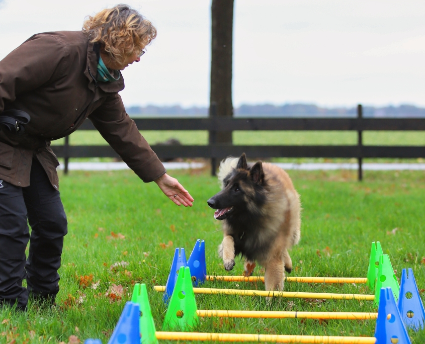 • Je mag je hond aanmoedigen met woorden en met handhulpen